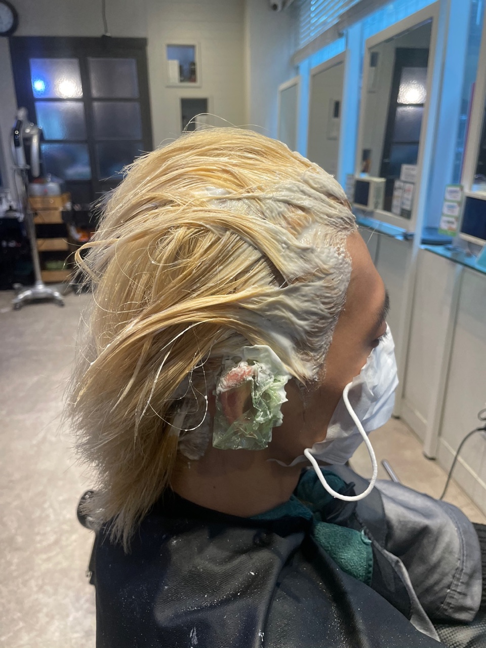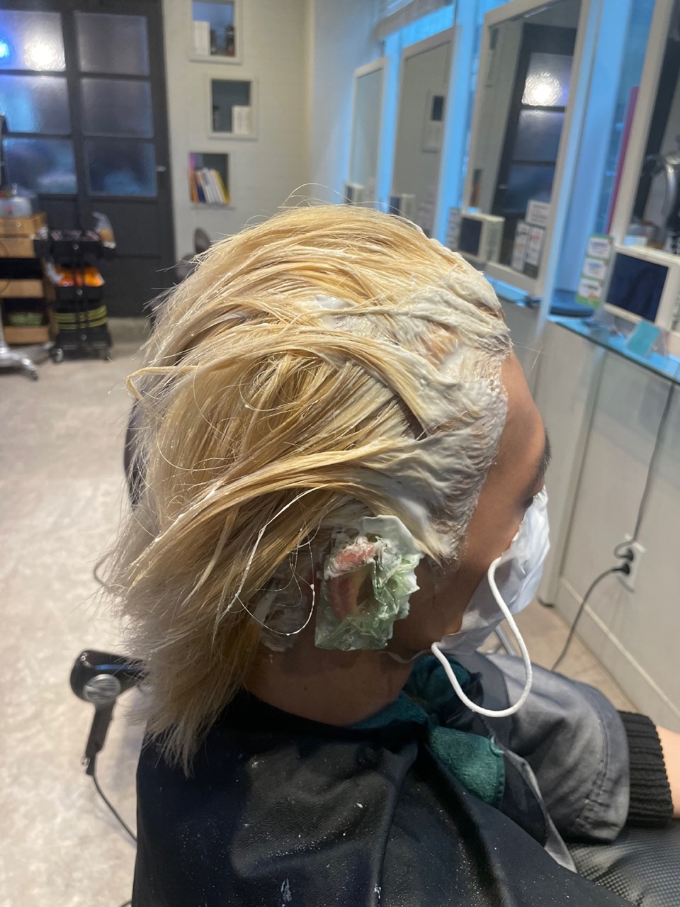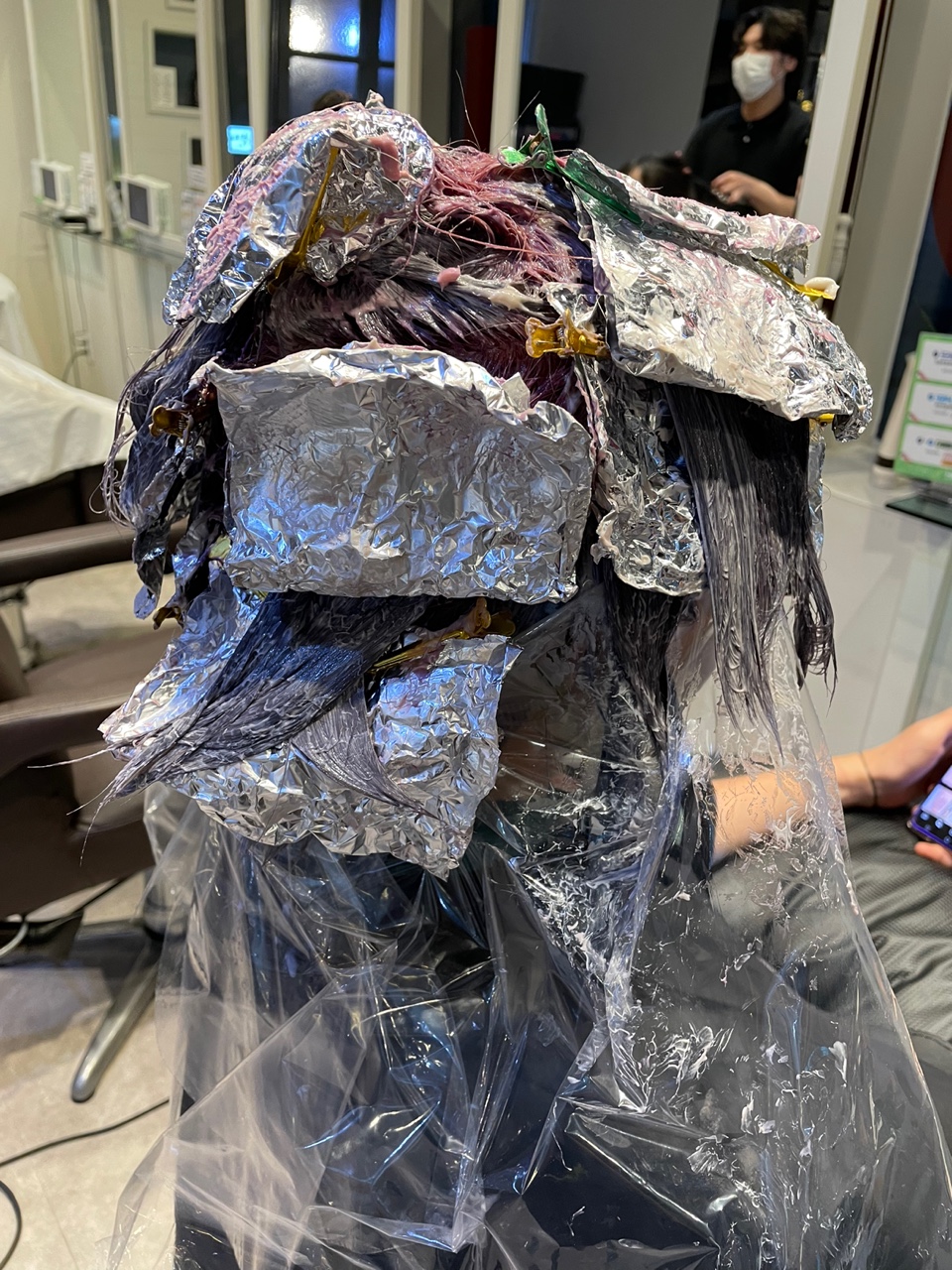염색을 진행하고 있는 모습이에요.