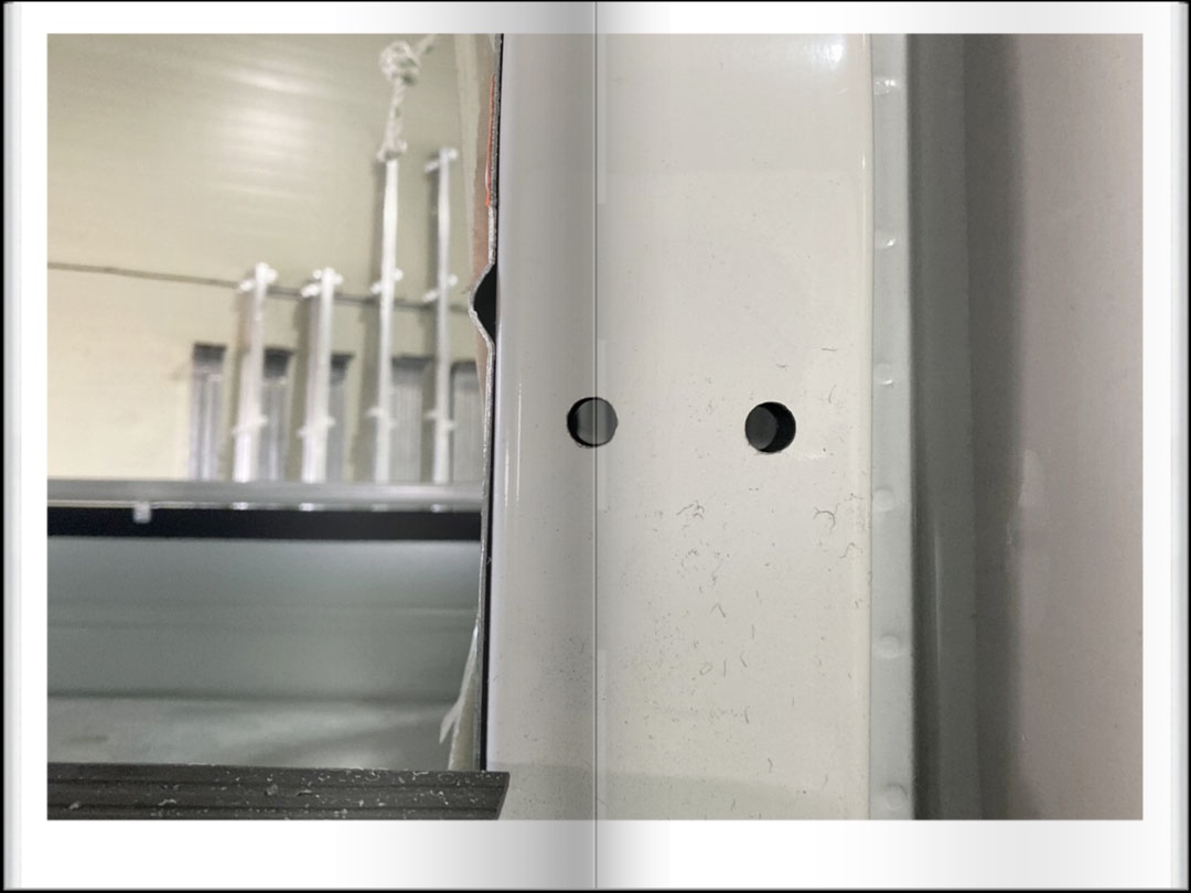첫번째 단계인 1톤 차량호루 설치를 위하여 먼저 호루가 왕복할 때 사용하는 이동로 즉, 호루 레일을 설치하기 위하여 먼저 드릴링 작업을 마친 상태입니다. 호루 레일은 양쪽 적재함 위에 약간의 틈새를 주어 설치가 됩니다. 이것은 개인용달이나 화물용달 차량은 수시로 적재물의 상하차 작업이 이뤄지기 때문에 양쪽 적재함을 개방시키기 위함입니다. 또한, 양쪽 적재함과 그 위에 설치되는 호루레일의 틈새는 깔깔이 작업이나 고무바작업이 가능할 수 있게 하기 위해 틈색을 주게됩니다.