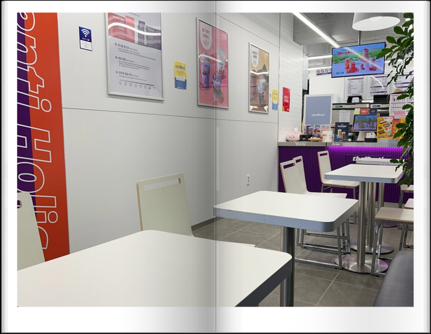 실매장은 경기도 소재로, 약 16평 규모의 중소형 매장에 속합니다. 현재는 풀오토 운영 중에 있으며, 재료비중은 커피전문점의 평균에 속하는 약 35% 수준이라서 점주분에게 큰 부담이 없습니다. 매장 규모에 비하여 인건비와 고정비는 낮은 편이라서 점주분의 어깨를 가볍게 해주고 있습니다. 입지환경으로는, 오피스상권에 속합니다. 따라서, 직장인들의 수요가 풍부하고 일반인과 학생 등의 직접 수요(내점, 테이크아웃, 배달 등)가 넉넉한 편입니다.