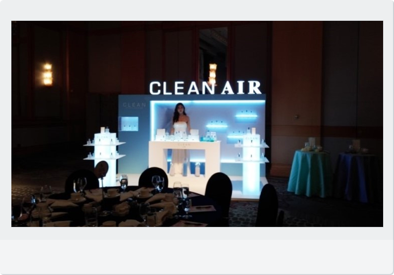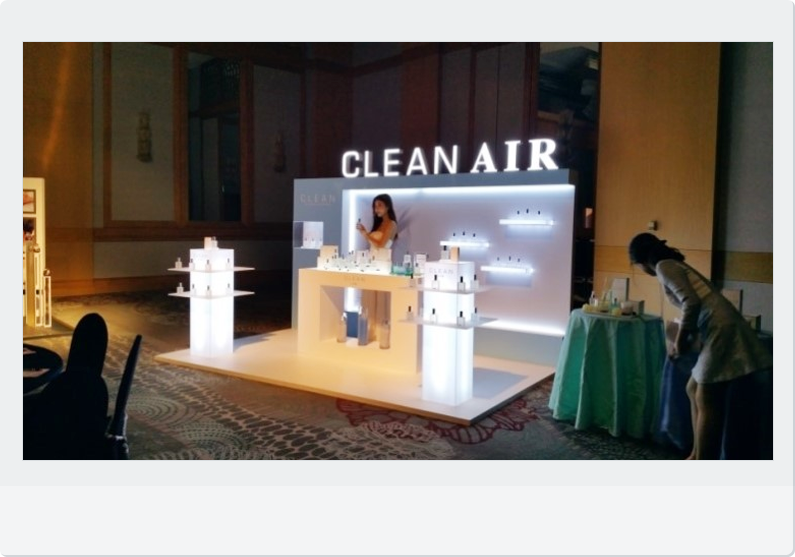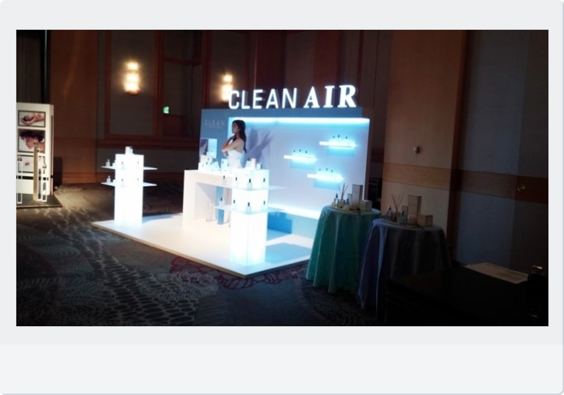 안녕하세요! 오늘은, 팜애드에서 제작 및 설치한 행사부스제작 사례를 살펴봅니다. 사진에서는 클린에어 향수 행사부스가 현장에 디스플레이된 모습을 확인할 수 있습니다. 신제품 발매식 행사에서는 제품에 대한 조명을 강화하고 나머지는 어두운 조명을 하고 있어 더욱 눈에 쏙 들어오는 행사부스와 향수 신제품을 관람하게 만들어주고 있습니다.