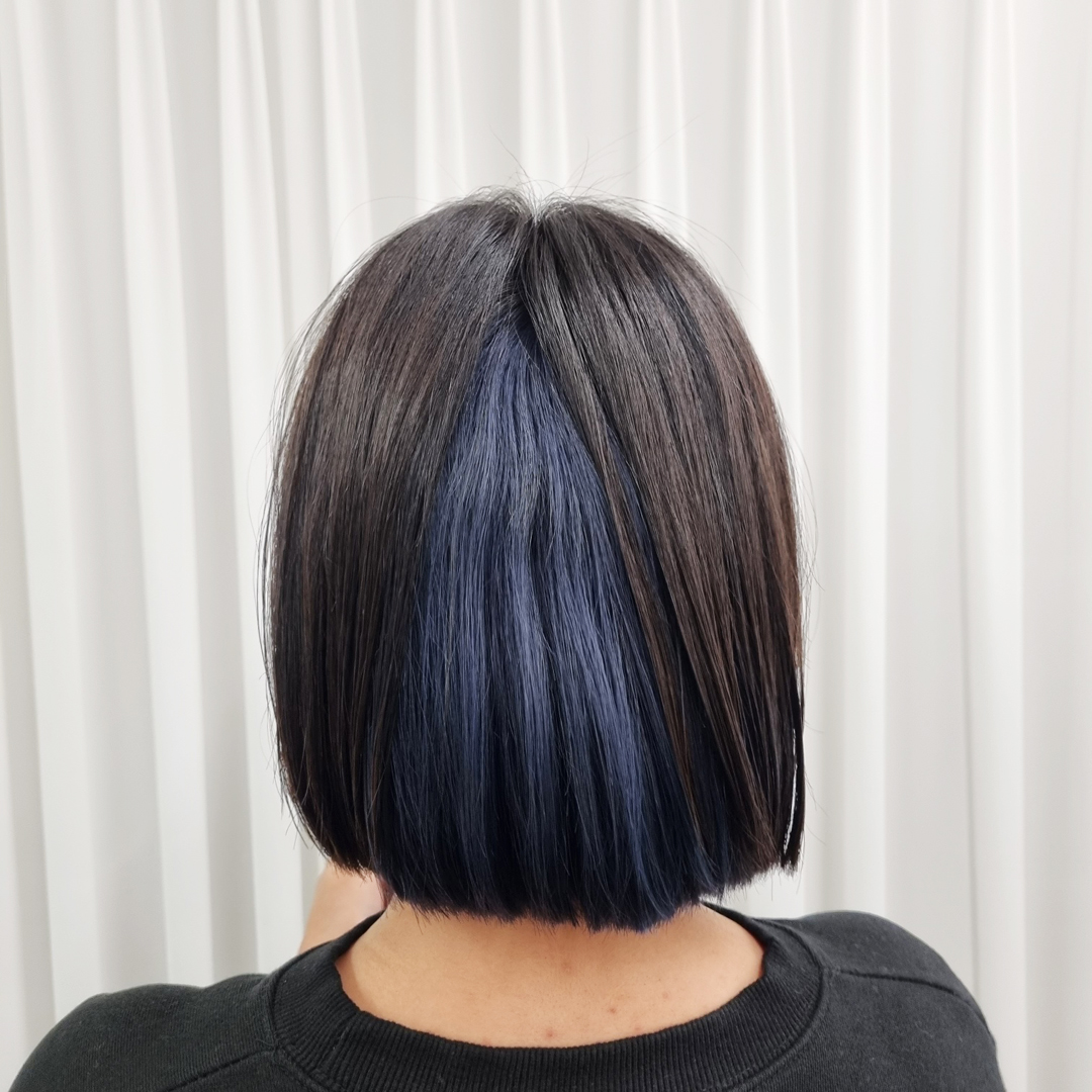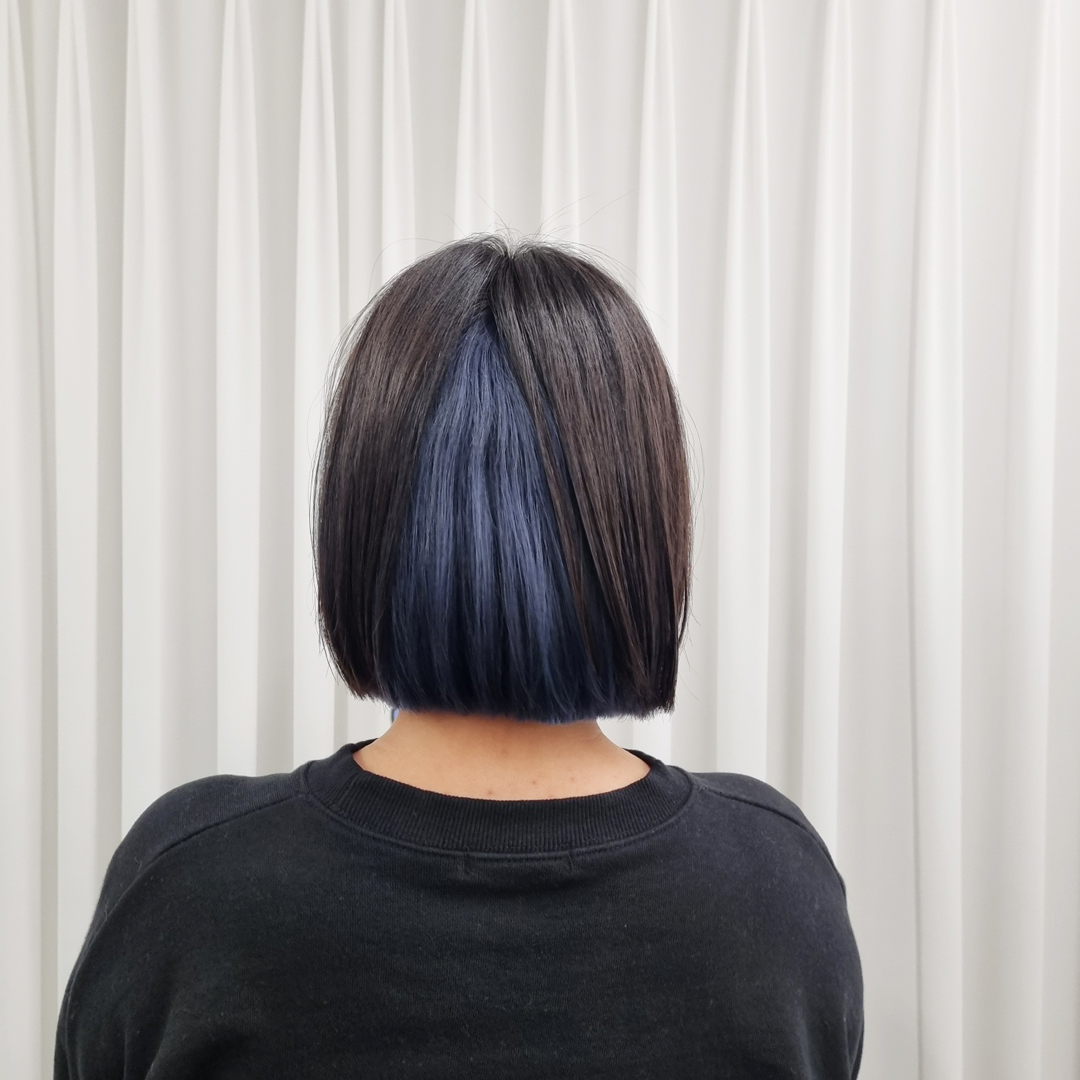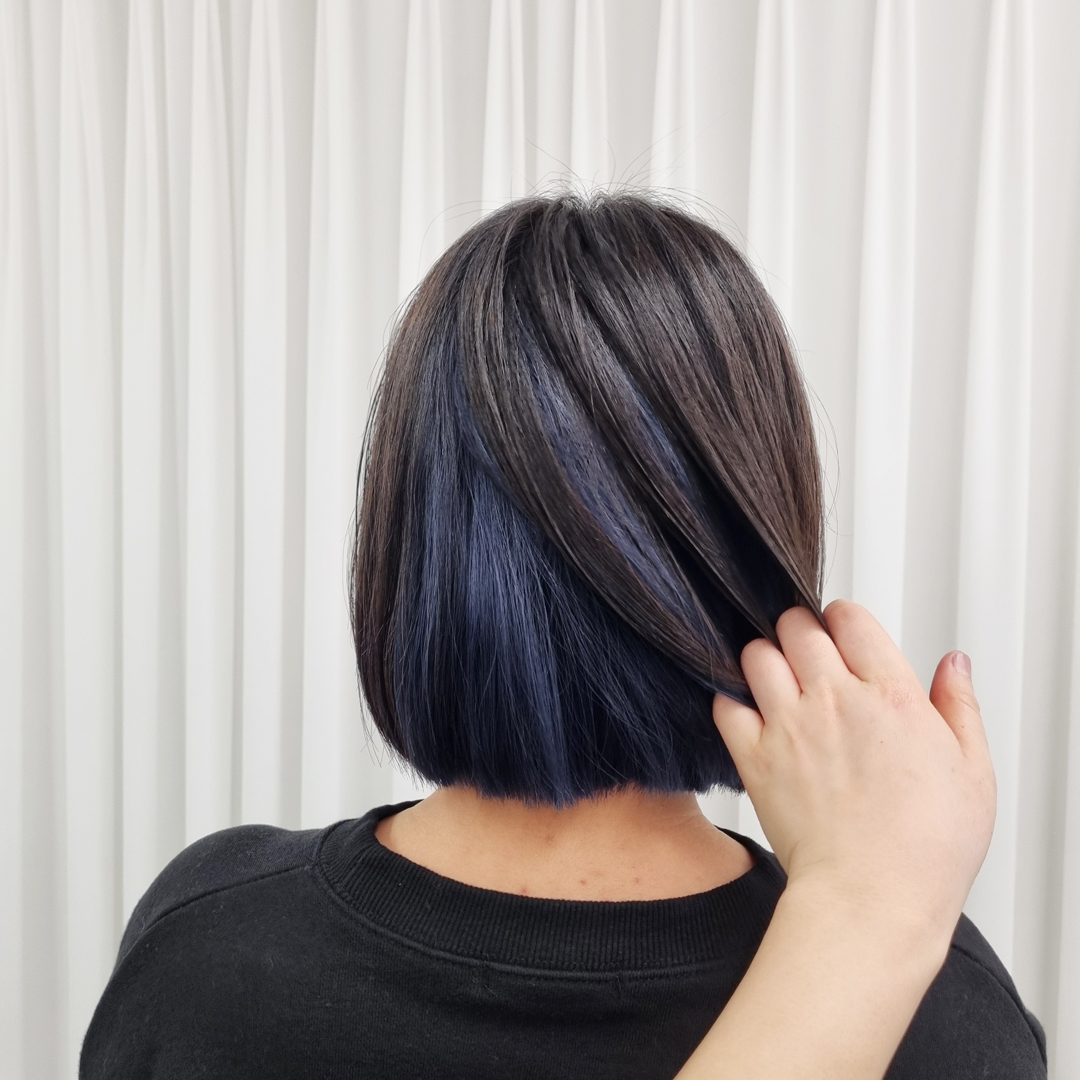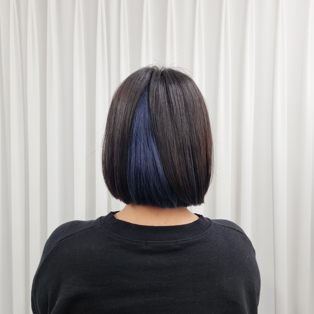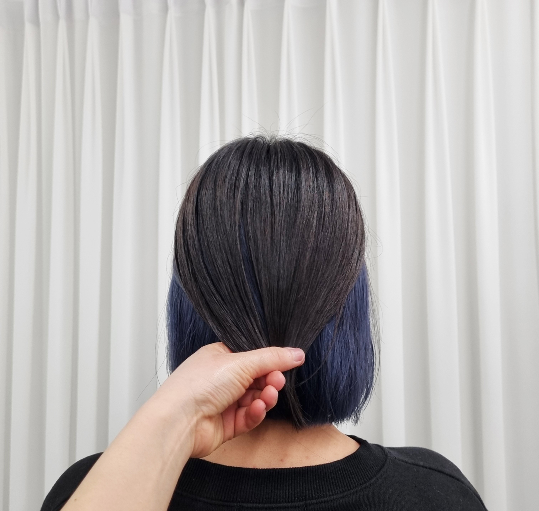 단발 딥블루 염색이에요. 탈색횟수는