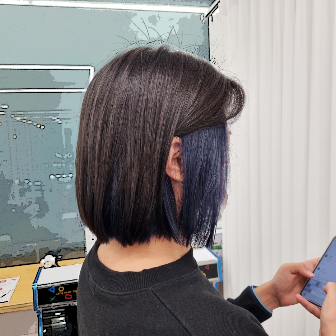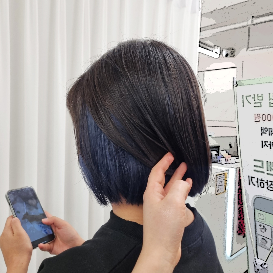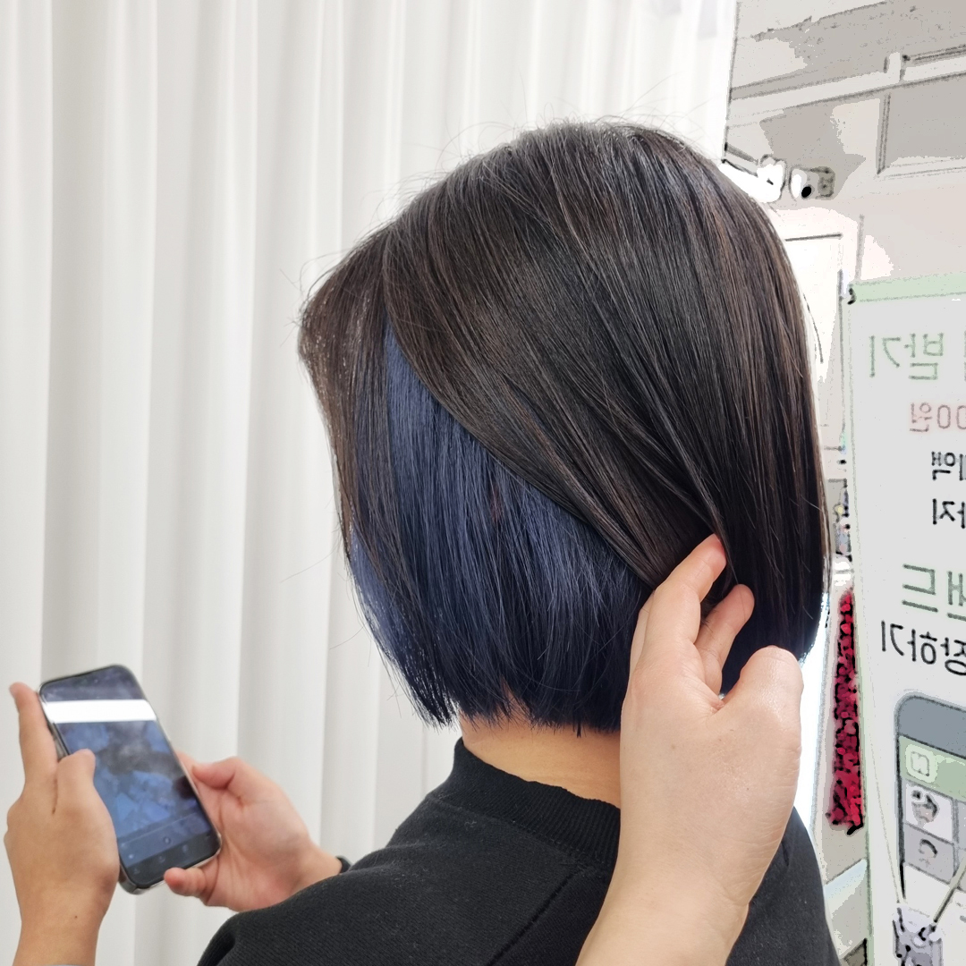 단발머리 기장에 딥블루