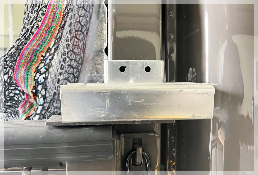 이제 적재함호루라고 불리는 슬라이딩 자바라를 레일 위에 올리고 호루를 펼쳐 부드럽게 움직이는지를 테스트하고 있는 모습입니다. 저소음 프레임은 아연도금에 안쪽이 몰딩형태로 제작되어 오랜동안 사용해도 안전하고 특히, 풀림방지너트를 적용했기 때문에 더욱 안전하게 사용할 수 있습니다. 이 위에 완벽방수천막만 올리면 모든 설치가 끝납니다.