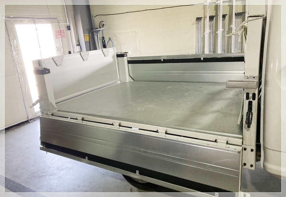 양쪽 적재함 상단부에 호루의 레일을 설치하고 적재함 개방이 되는지를 테스트하는 모습이죠. 호루의 레일은 말그대로 이동로 바닥에 'ㅗ' 자 형태로 굴곡진 레일이 형성되어 있습니다. 자동호루라고 부르시는 분들도 계시던데요. 이 레일 위에 우레탄바퀴의 오목한 부분이 정확하게 일치되어 호루 왕래를 아주 부드럽게 만들어주기 때문에 소음발생을 차단하고 한번의 푸시로 끝까지 밀려갈 정도로 부드럽게 움직이게 해줍니다.