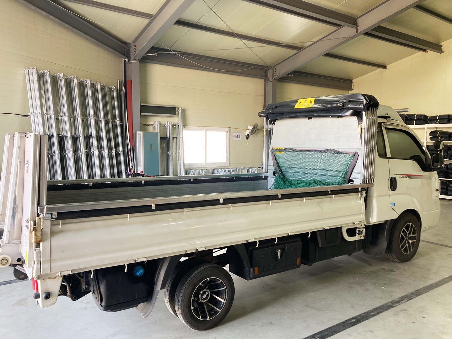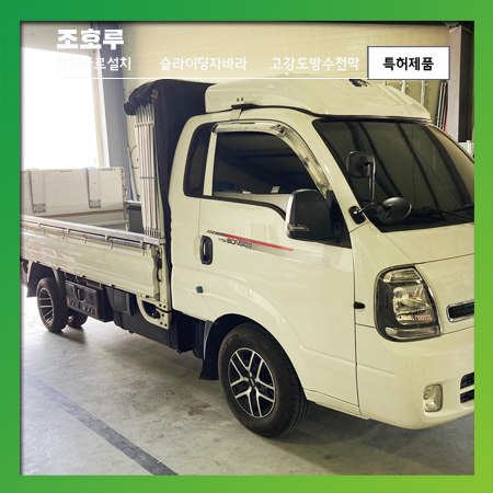 안녕하세요! 오늘은, #1톤호루 제작 및 설치 사례 중에서 조호루에서 시공해드린 봉고3 초장축 호루 시공후기를 살펴보기로 합니다. 조호루 설치공장에 입고된 봉고트럭의 모습이죠. 이미 초장축 호루가 설치된 즉, 완성된 모습을 보여드리고 있습니다. 적재함 길이가 무려 3.4m 나 되어서 살짝 까다로운 작업이었지만, 조호루의 축적된 기술력으로 완벽하게 시공해드린 사례입니다.