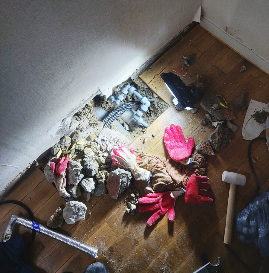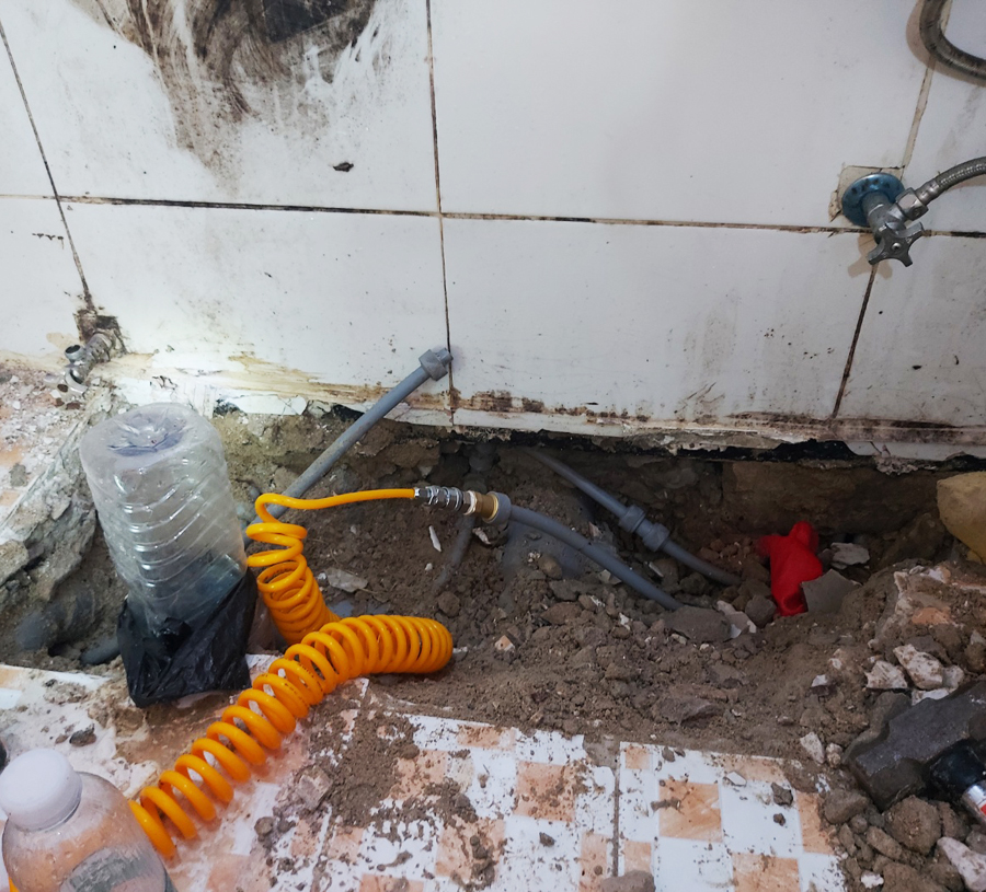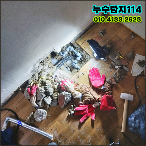 (2)누수가 발생하게 되면 일상에서 화장실 사용이 불편해지니 여러가지 일상의 불편함이 이루말할 수 없는 상태가 되는 것이죠. 따라서, 빠르게 현장을 셋팅하고 누수탐지 원인을 찾는 것이 급선무였습니다.