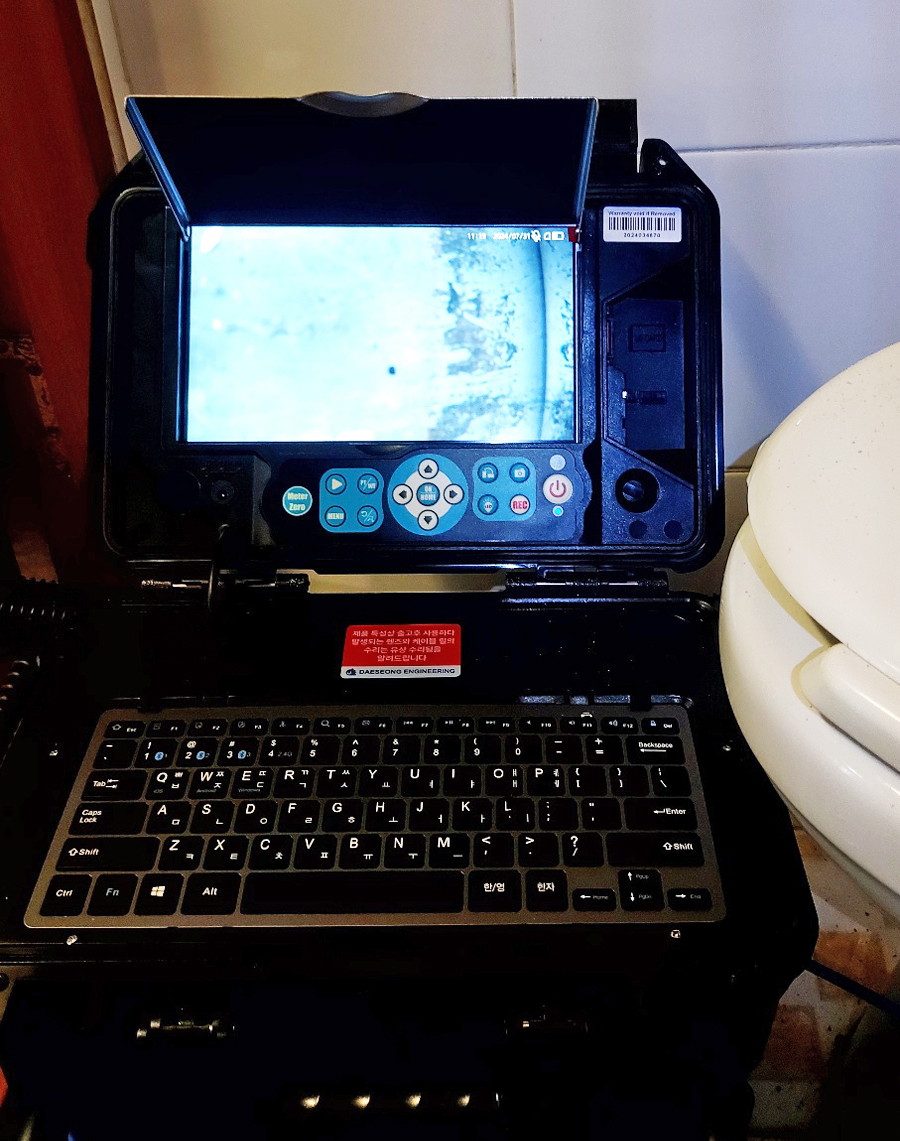 (4)내시경카메라는 좁은 공간에 넣어 누수지역을 탐지합니다.