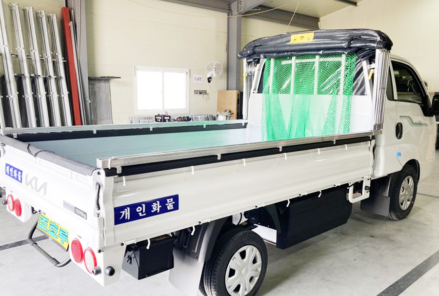 1톤 호루는 설치위치가 적재함 중에서 양쪽 개폐가 되는 적재함 상단부를 따라 호루 이동로가 설치되고 그 위에 저소음 프레임, 즉 슬라이딩 자바라가 올려지고 이어서 고강도 방수천막을 설치하며 고정끈 결박으로 모든 설치 과정을 마무리하게 됩니다. 내방시에는 당일 설치하고, 차량 3대 이상을 설치하시는 경우 직접 현장으로 출장을 가서 설치해드리고 있습니다.