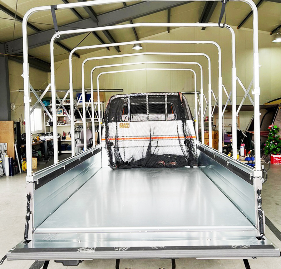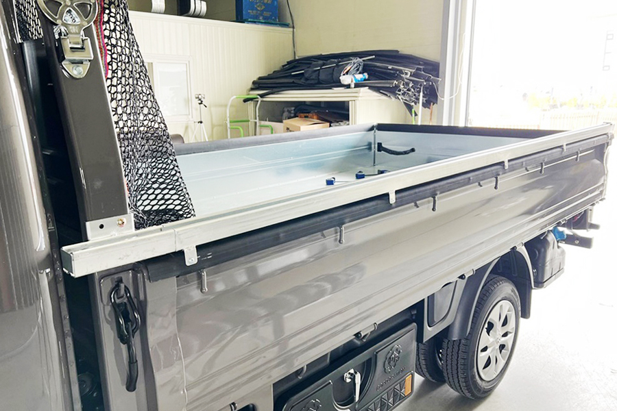 1톤 호루, 이동로는 사진처럼 양쪽 적재함 상단부에 설치되고 내부 이동로 바닥에는 굴곡진 레일이 설치되어 이 위에 올려지는 슬라이딩자바라가 부드럽게 움직이도록 해주는 역할을 합니다. 이것은 물리학적으로 올려진 슬라이딩 자바라의 균일한 하중이 동일하게 레일 위에 작용해서 균일한 힘으로 왕복이 가능한 것이죠. 심지어 한번의 푸시만으로도 끝까지 밀려나가는 즉, 슬라이딩 되는 1톤 호루를 보유할 수 있습니다.