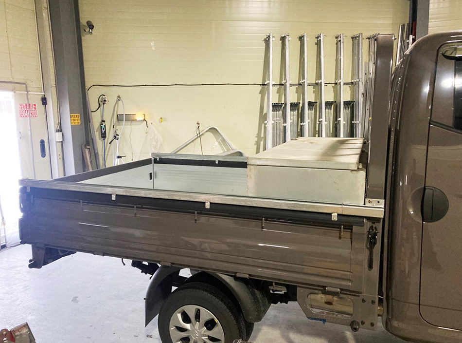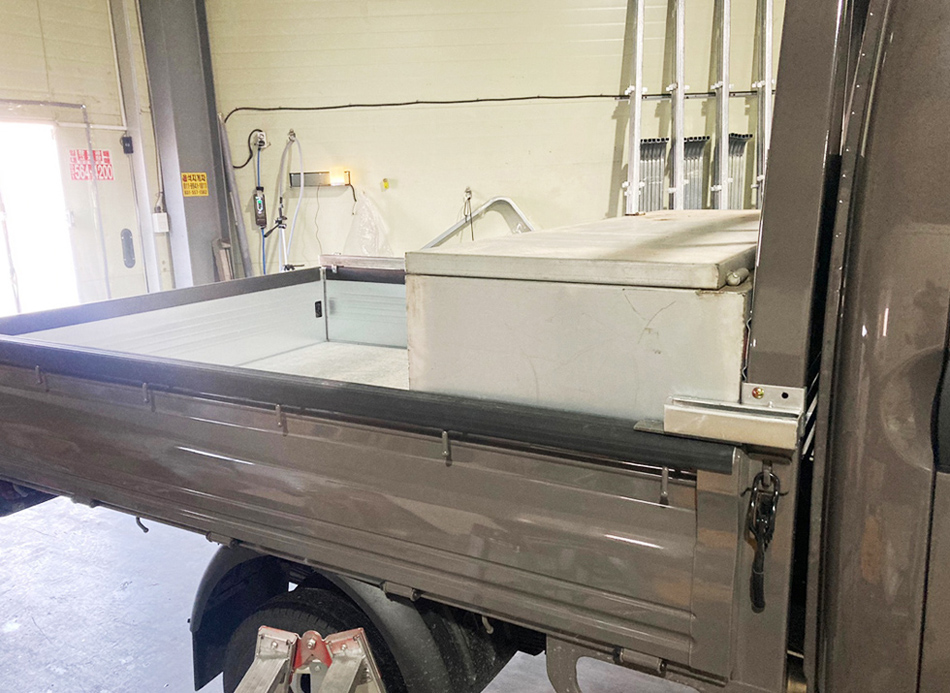 고강도 방수천막을 설치하면서도 모든 1톤 자바라호루 설치가 완료됩니다. 방수천막은 특수재질로 제작되어 영항 30도에서도 부드럽게 왕복이 가능하고, 국내 모든 기후의 영향으루부터 내부 적재물을 보호, 보존시켜줍니다. 마감재 부분에는 파이프재질로 되어 쉽게 말아올리고 내릴 수 있습니다.
