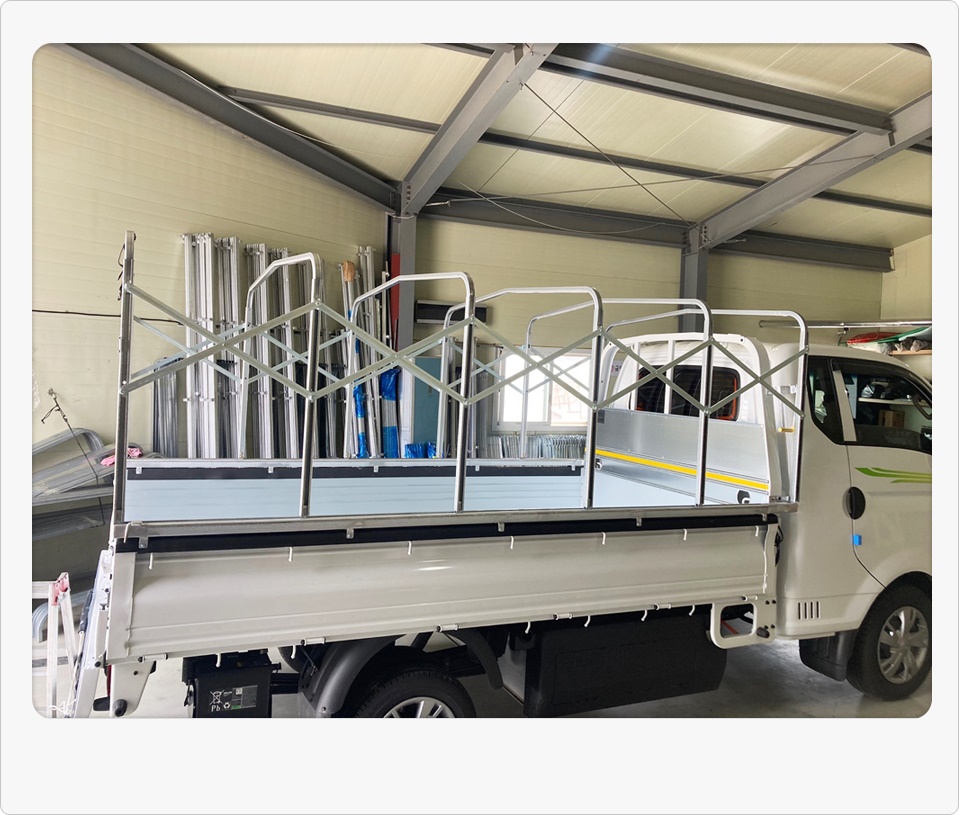 - 양쪽 적재함 상단부에 호루 레일을 설치