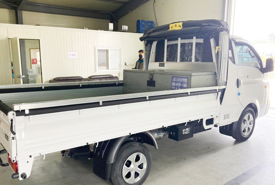 3단계에서는 고강동 방수천막을 덮어서 전체적인 1톤 호루, 포터호루가 완성됩니다. 방수천막은 특수재질로 오랜동안 사용이 가능합니다. 방수천막은 영하 30도에서도 얼지않고 부드러운 움직임이 가능하고, 국내 모든 기후의 영향으로부터 내부 적재물을 보호, 보존시켜줍니다. 마감부분에는 파이프재질로되어 쉽게 말아올리고 내릴 수 있습니다.